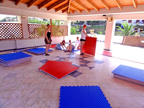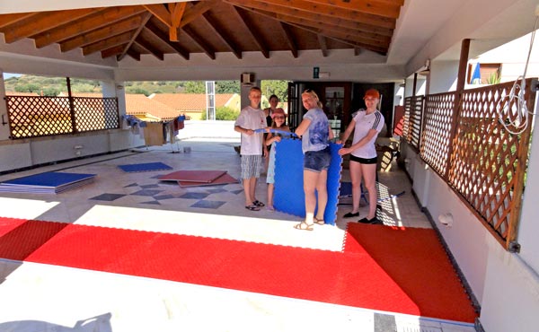 Shihan Henriksen har ordnet avtalen med et leilighets anlegg, hvor vi får legge ut matter på deres overbygde takterrasse hver gang vi ønsker å holde samlinger der. Vi har tilpasset mattene, som blir liggende i hele perioden vi er der. Om vinteren lagres våre matter i anleggets lagerrom. Dette gir oss betydelig enklere tilgang til gode treningsforhold enn tidligere, hvor vi var nødt til å reise fra der hvor vi bor, til dojoer inne i byen.