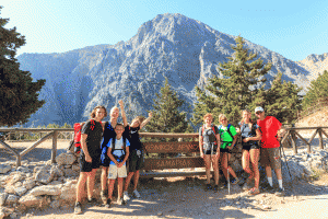 Tirsdag kveld var det klart for fjelltur. Turen ble like fantastisk i år som i fjor og hadde nærmere 35 deltagere. Den ble ledet av vår yogainstruktør, Nektarios Mitritsakis, sammen med vår altmuligmann, «Mr. Fix it», Harald Sundby. Innleiet buss fraktet oss opp til Omalos på 1300 m.o.h., som også er starten på den 18 km lange Samariaravinen.