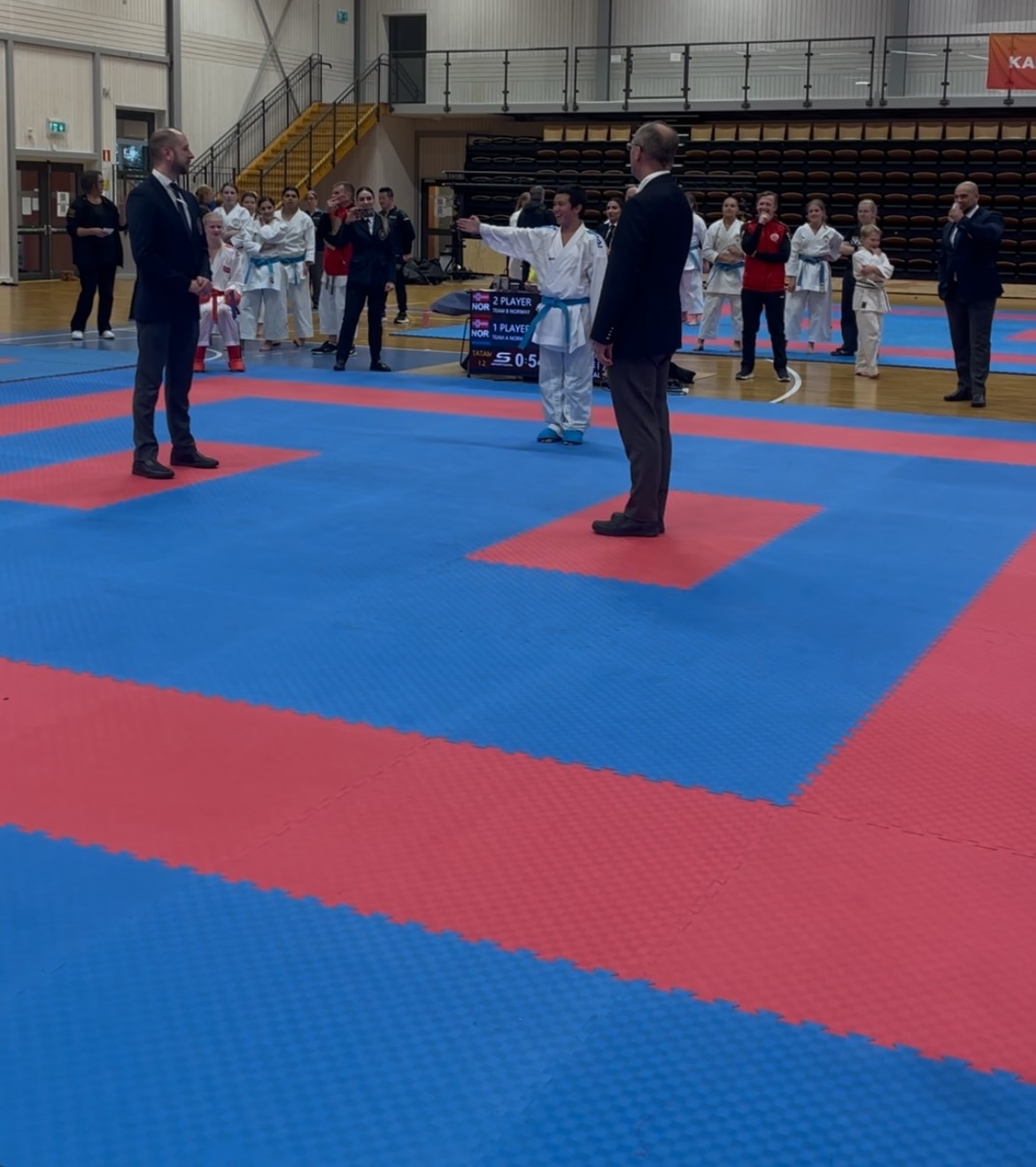 På søndagen hadde arrangøren lagt opp til treningssamling fra 09.00 – 15.00 med kata og kumite instruktører, samt matching, og hvor også våre utøvere fikk prøve seg som dommere. Nyttig dag med innslag av både kunnskap og humor. Leo som hoveddommer høstet mange lovord fra de mest erfarne svenske dommerne.